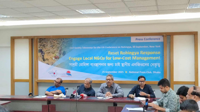 Coast Foundation organises roundtable discussion titled “Affordable Rohingya Response Requires Local NGO Leadership” at the National Press Club on 25 September 2025. Photo: TBS